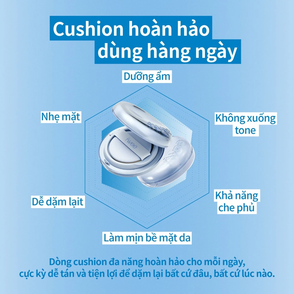 Fwee Glass Cushion Foundation là dòng phấn nước cao cấp mang lại lớp nền căng bóng tự nhiên, chuẩn “glass skin”. Thiết kế cushion tiện lợi giúp kiểm soát lượng kem vừa đủ, dễ dàng tán đều, tạo hiệu ứng da mềm mịn, trong trẻo.